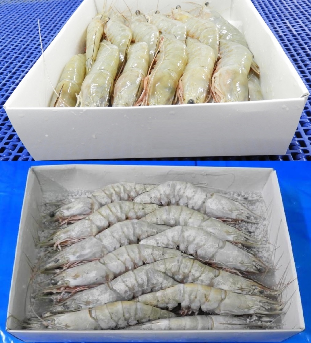 Excellent quality Head on White prawns block frozen and IQF at K V Marine Exports, Chennai. All Export quality fresh, chilled and frozen seafood, fish, shrimps, tiger prawns, squid, cuttlefish, lobster, octopus, seer fish, tuna fish, sword fish, vanjaram fish, mackerel, available at KVM Exports, Chennai, Tamilnadu, India. Kindly contact or whatsapp to +91-9840581706