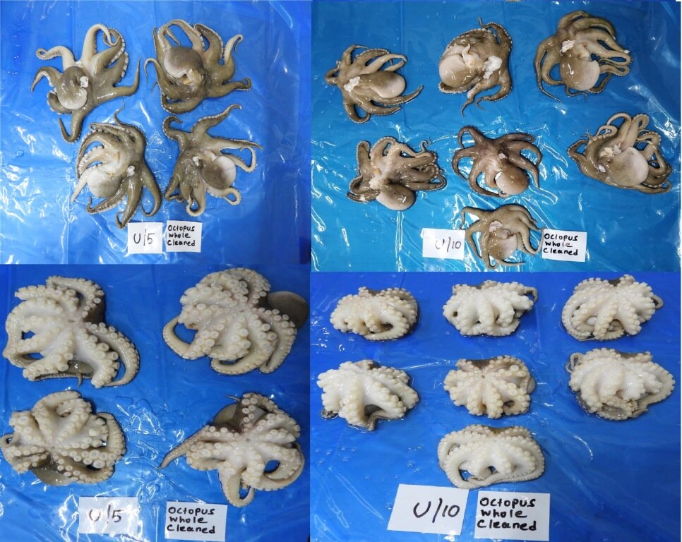 Best quality octopus whole cleaned block frozen and IQF at K V Marine Exports, Chennai. All Export quality frozen seafood, seer fish, king fish, tuna fish, sword fish, shrimps, tiger prawns, squid, cuttlefish, pomfret, lobster, octopus available at KVM Exports, Chennai, Tamil Nadu, India. Kindly contact or whatsapp to +91-9840581706